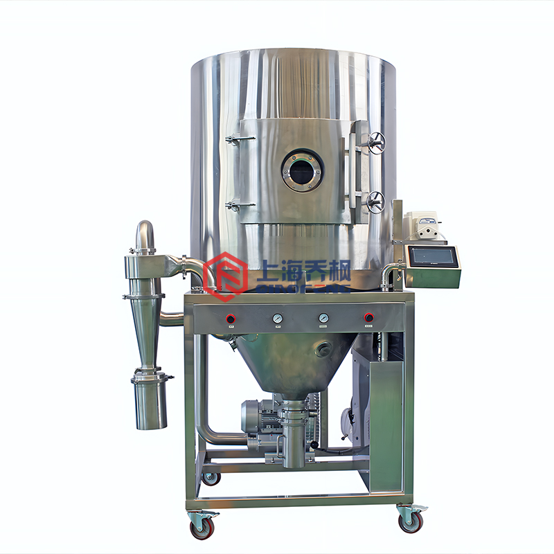 Granulating spray dryer is a set of granulating spray dryer developed by Qiao Feng, Shanghai. The QFN-ZL series granulating spray dryer (Qiao Feng exclusive) is a special double air blowing granulator spray nozzle, which is a major innovation in China. It directly transforms uniform spherical droplets into particles through uniform heat.