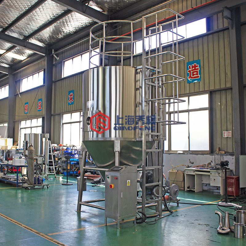設(shè)備主要由:送料系統(tǒng)、加熱系統(tǒng)、干風(fēng)裝置、霧化系統(tǒng)、噴霧干燥系統(tǒng)、產(chǎn)品回收系統(tǒng)組成。